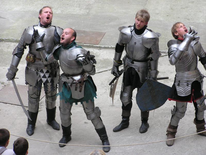 Średniowieczna komedia w zbrojach rycerskich, pełna szermierki i zwrotów akcji. Z humorystyczną przesadą przedstawiamy widzom, dlaczego wojny nigdy się nie skończą. Przedstawienie to gramy z niewielkimi zmianami od 1994 roku i miało już ponad 1000 powtórzeń. Nie mniej udane jest również przedstawienie Gladiatorzy.