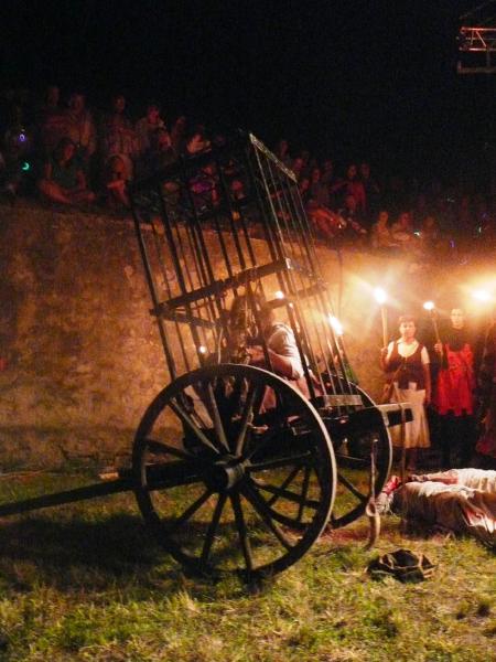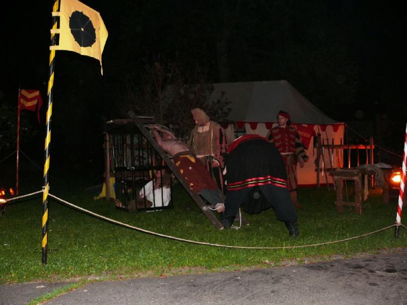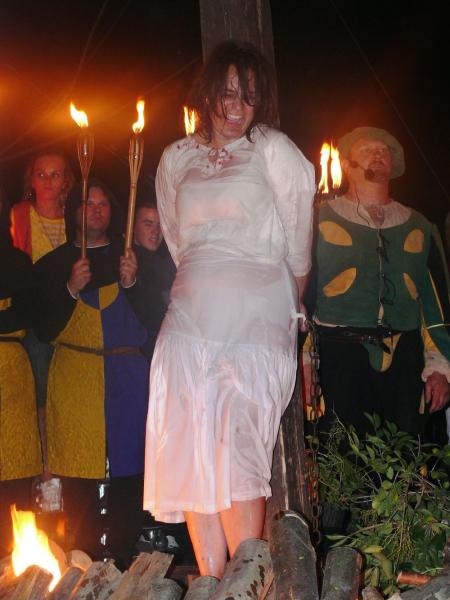 Brutální a mládeži nepřístupné představení, které odhaluje surovost a krutost výslechu v mučírně. Vyslýchaní jsou předem odsouzeni a přiznání je z nich vynuceno palečnicí, španělskou botou, drcením kloubů, bičováním, řezáním kusů těla, pálením loučí a jinými drastickými metodami. Ve vystoupení se hojně používá umělá krev a jiné speciální efekty. Na konci může být na hranici upálena žena, která byla předtím přinucena se přiznat k čarodějnictví.